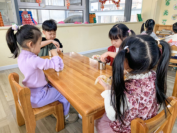 天津梅江私立幼儿园的孩子们自己动手,将春天的“色彩”卷进饼中,一口咬下,清爽的滋味在口中化开。这不仅是一次味觉的体验,更让“顺应时节、健康饮食”的传统智慧,通过最日常的方式浸润心间。