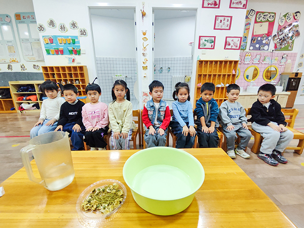 立冬扫疥,百病不沾——这一古老习俗蕴含着清洁养生的智慧。幼儿园里,孩子们在盛满菊花的水里洗手,希望能够增强抵抗力,度过一个健康的冬天!